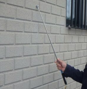 肉眼では確認できない外壁の浮きや剥離などを 診断する機材です。外壁を叩いたり撫でるよう に転がし、その時の反響音や感触で判断します。 打診棒はリフォームにおいて非常に大切な道具 と言えます。 |