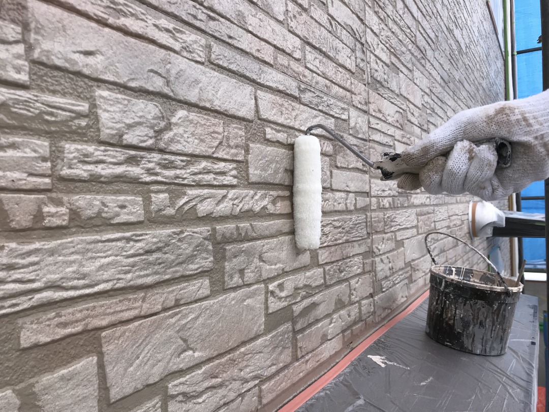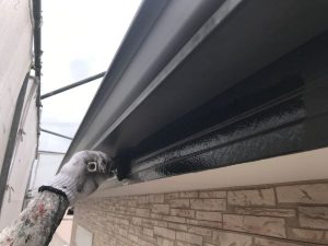 汚れを取り除いた後、塗料をしっかりと密着させるために、シーラーと呼ばれる下地材を塗布します。シーラーが乾いたら、上塗りを2回行って完了です。樋と鼻隠しを同一塗料にすることで一体感があり、美しい外観に仕上ります。