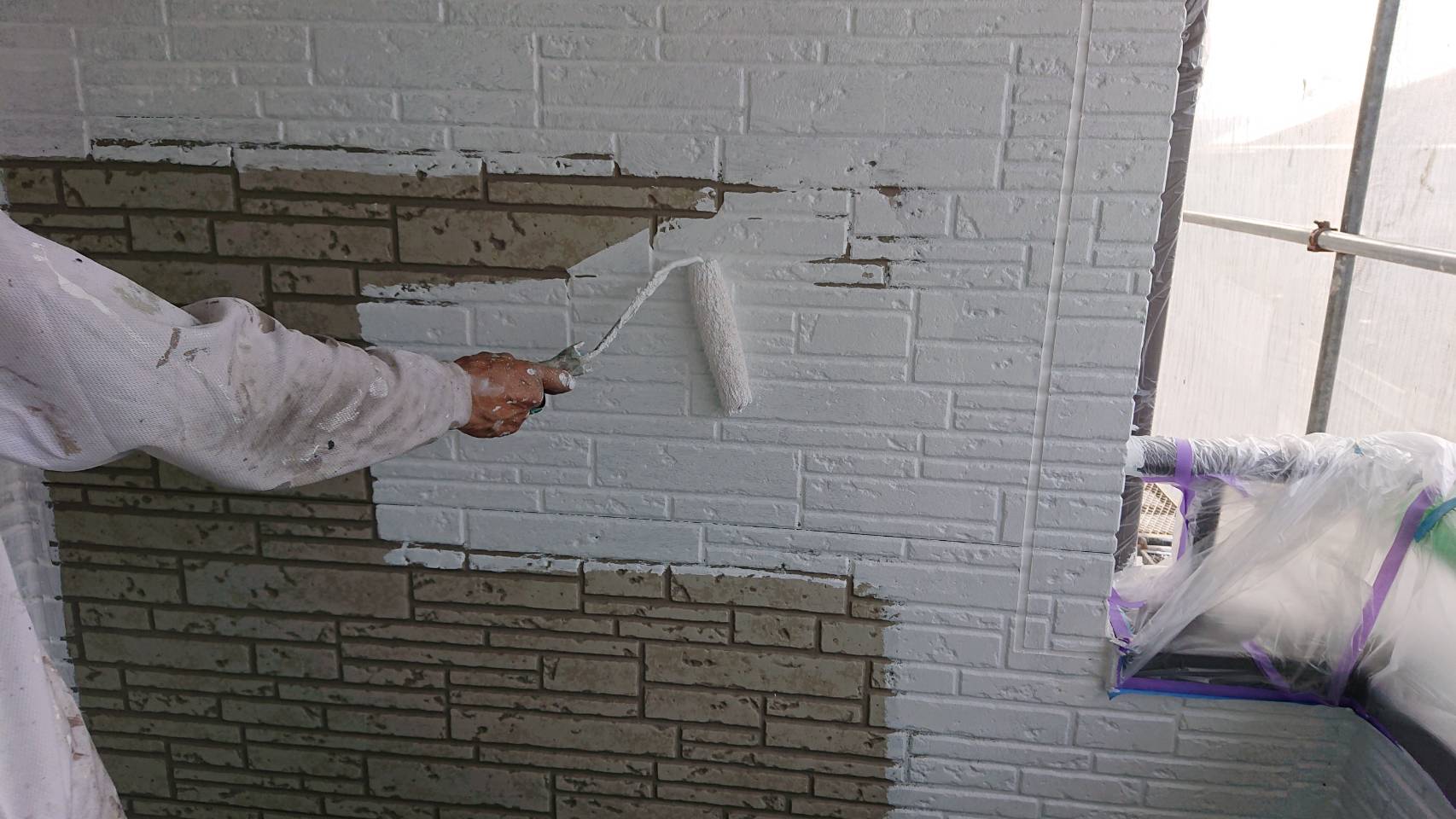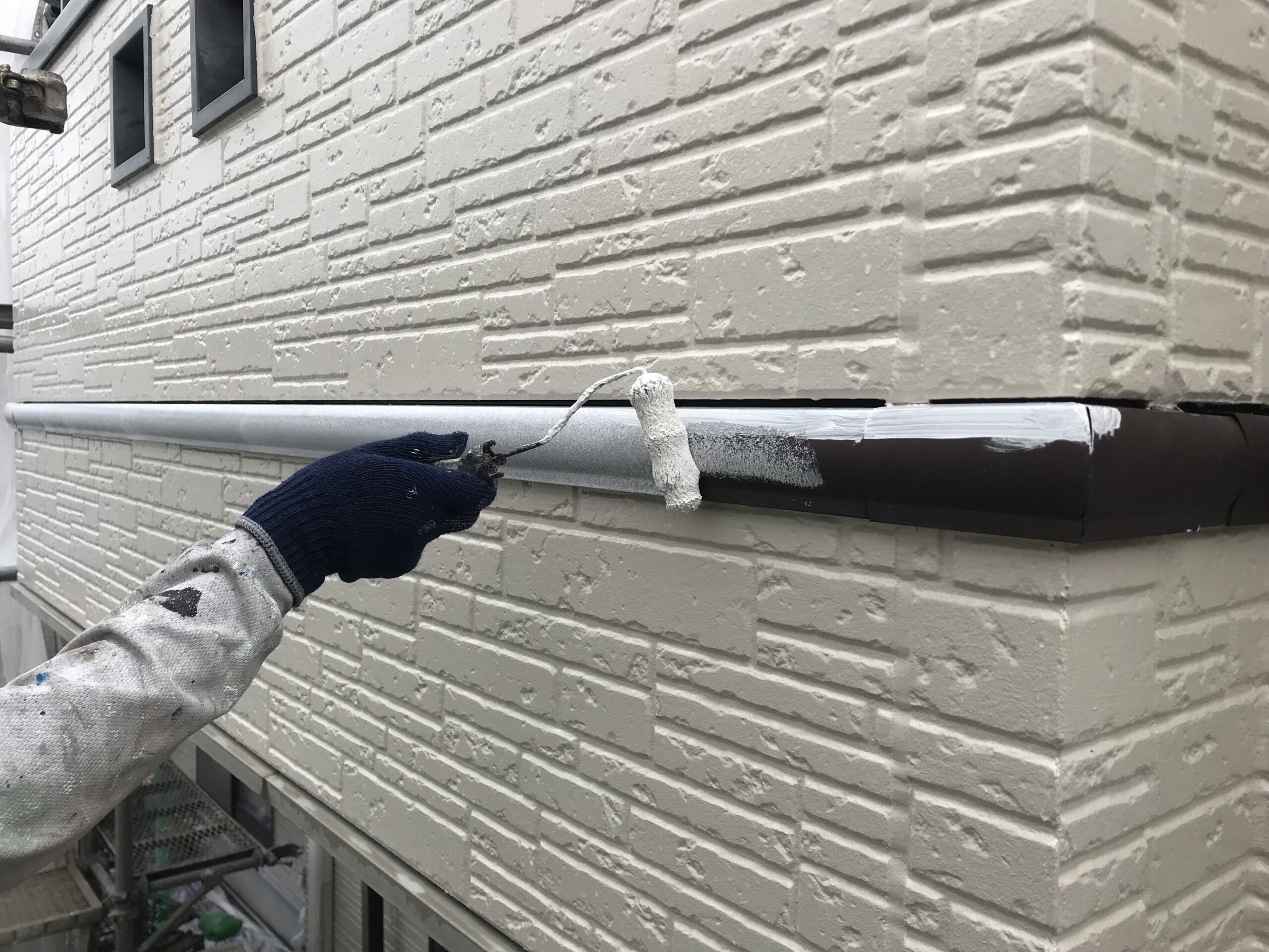 その後、中塗り、上塗りとシリコン塗料「キクスイ ロイヤルシリコン」を2回塗ります。
