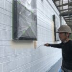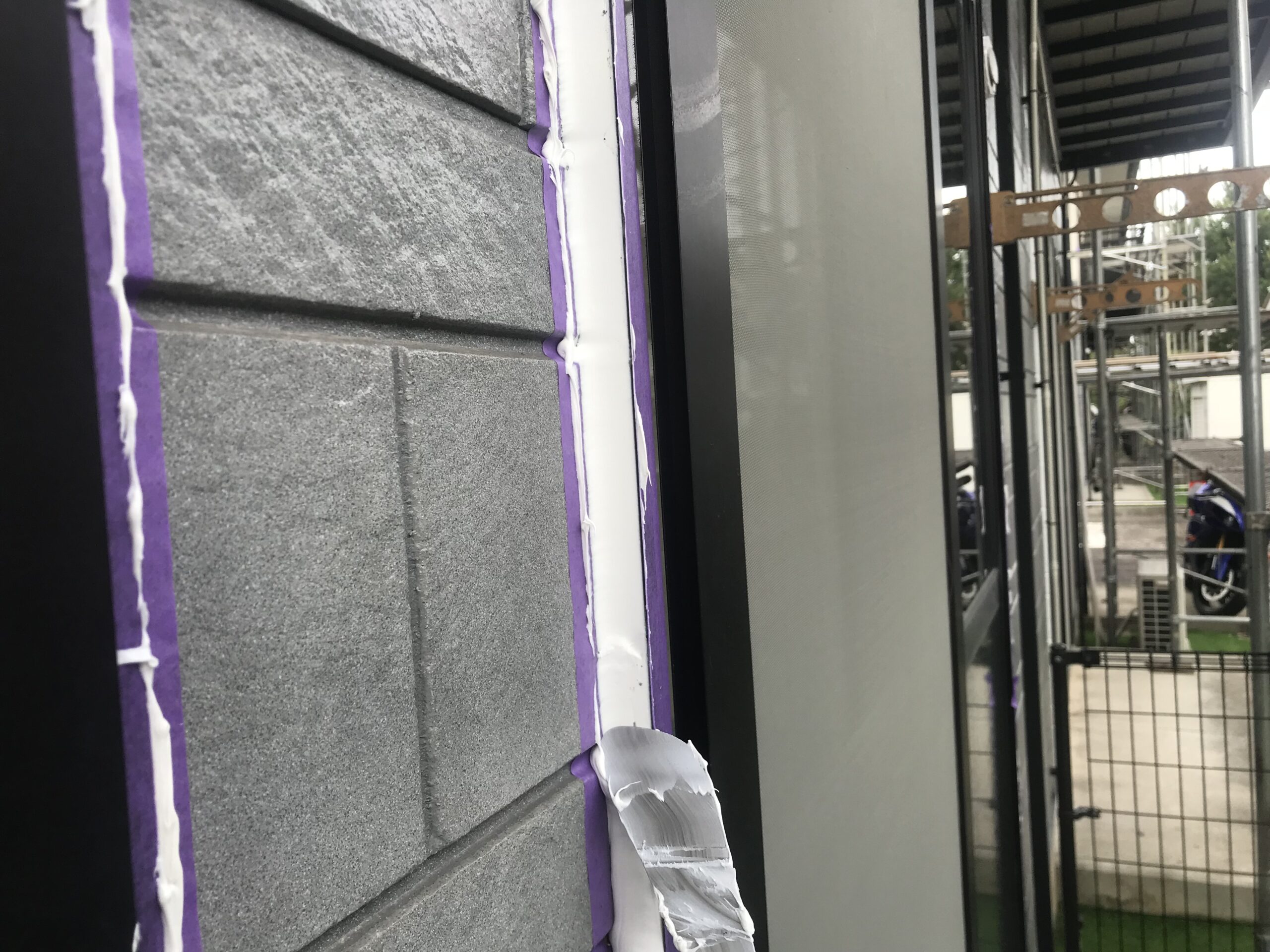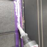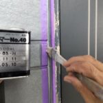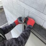 新しくシーリングを充填する部分にマスキングテープを貼ります。マスキングテープはコーキング材が余計な部分につかないように養生するために貼ります。