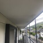 廊下,外部階段は、既存の塩ビシートを撤去後、新規塩ビシートに貼り替えます。