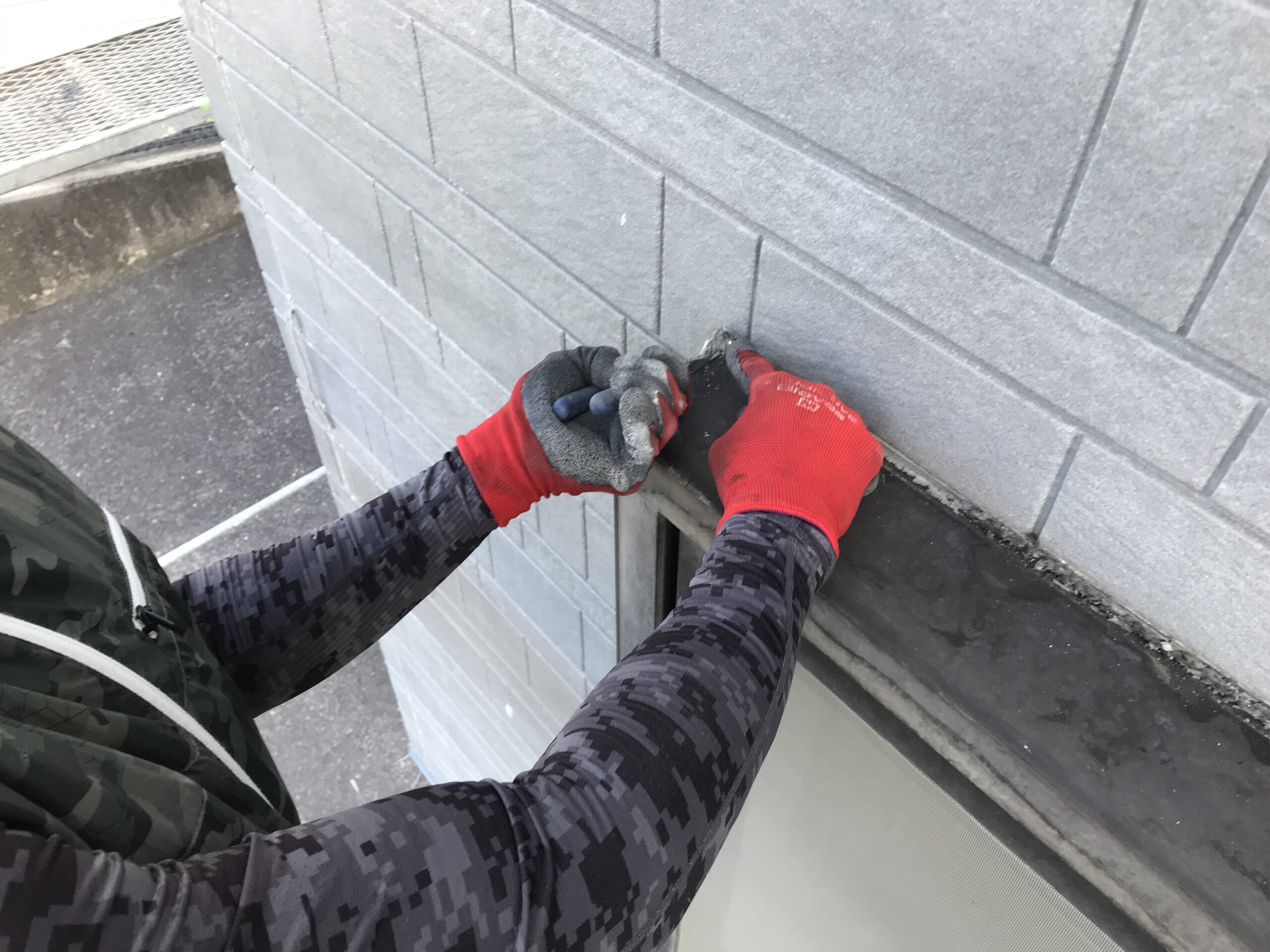 既存のシーリングは、外壁目地,サッシ廻りすべて撤去します。
