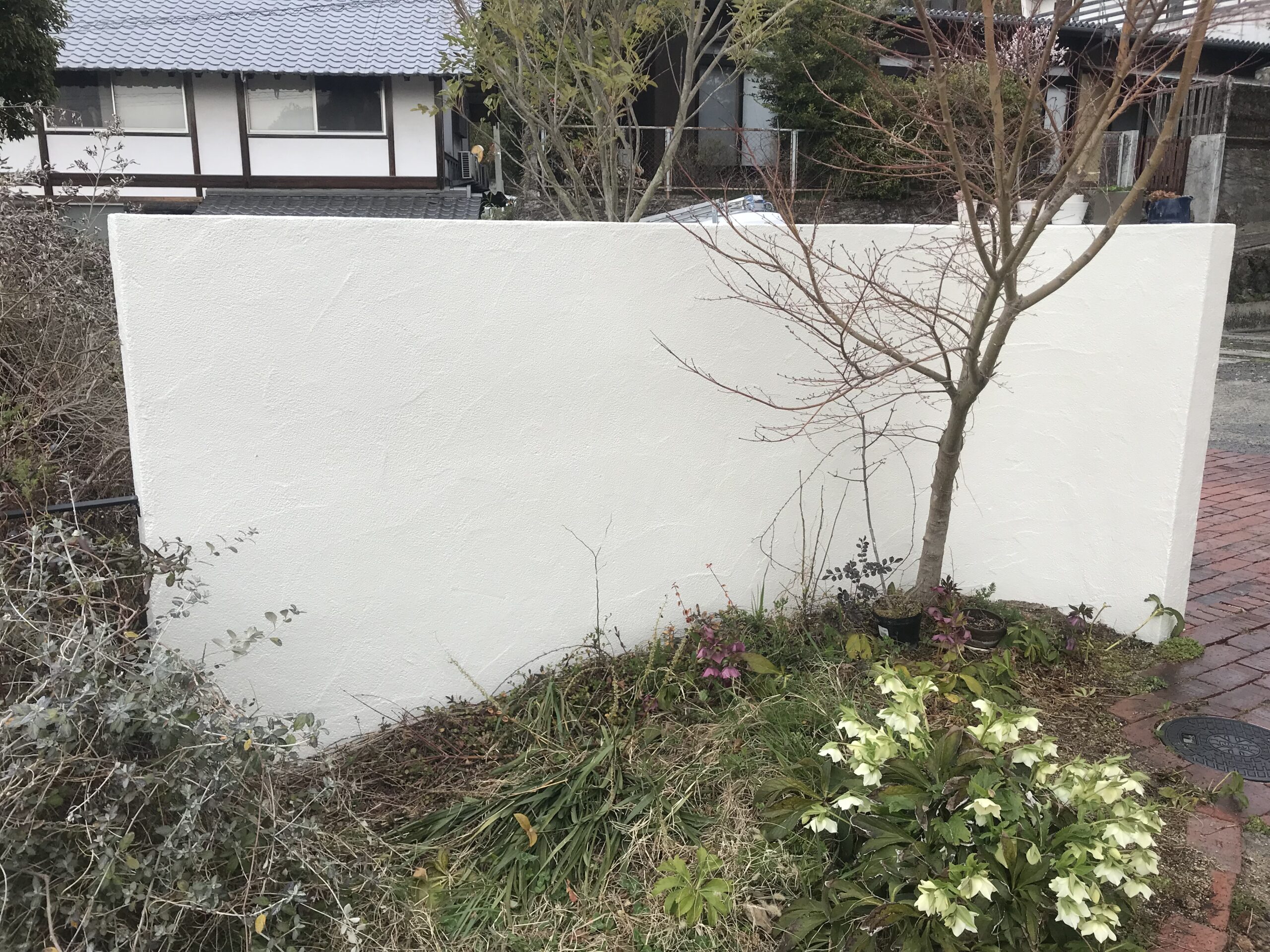 塀も洗浄して下塗り+上塗りで塗装しました。