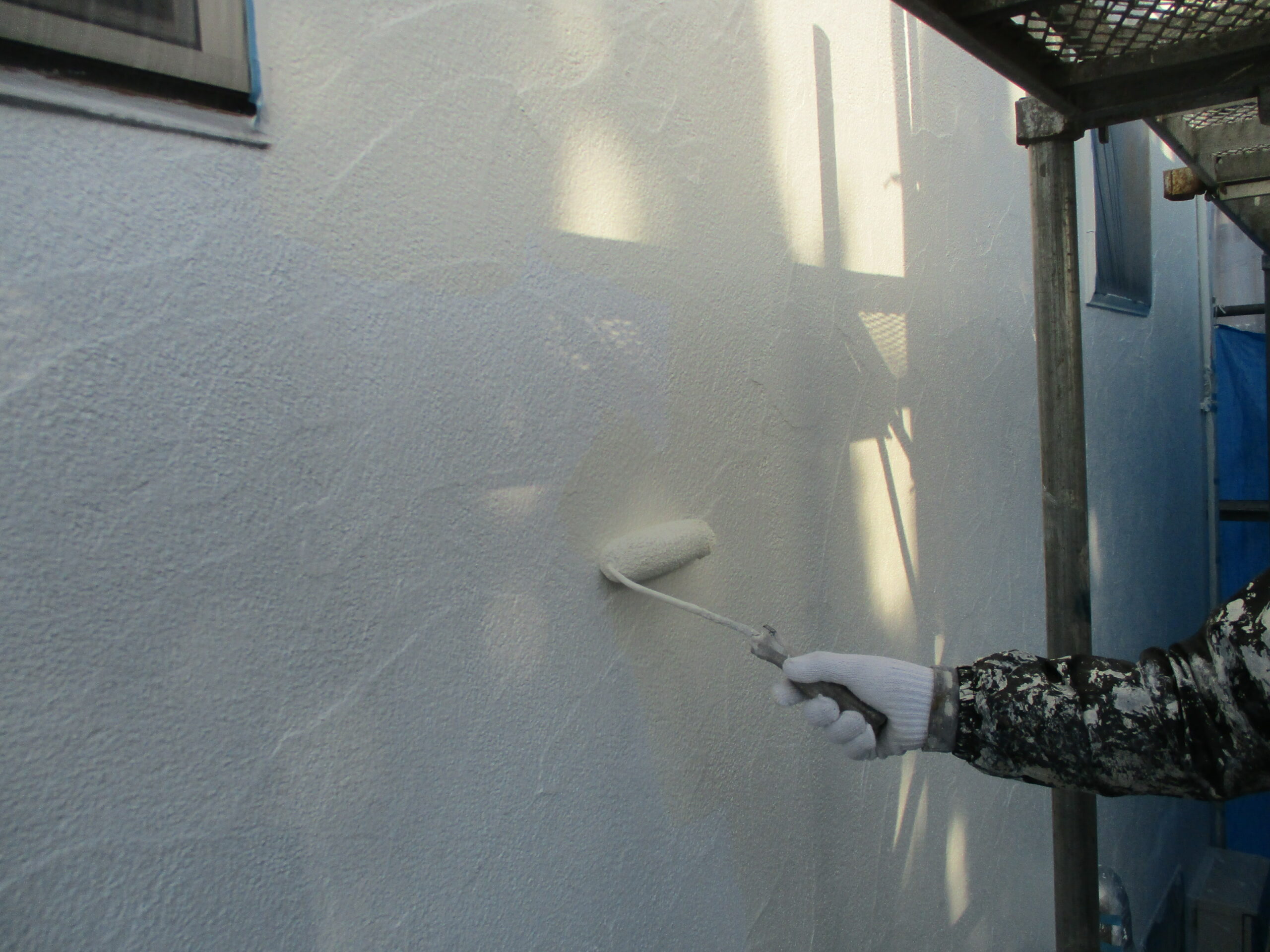 下塗り調整塗料は「キクスイ ロイヤルフィラー」を塗っていきます。しっかりと上塗り塗料を密着させて、塗膜の剥がれを防止します。