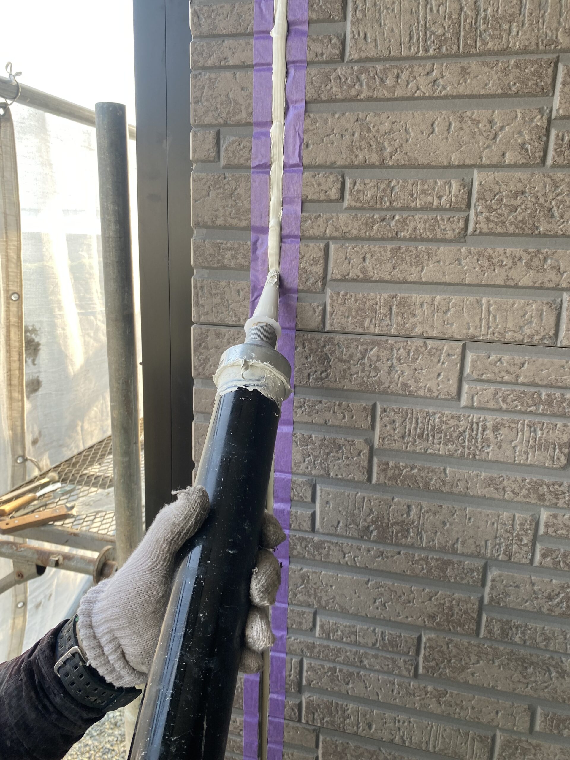 塗装の工程に入る前にシーリングの打ち替えを行います。
