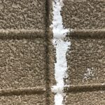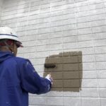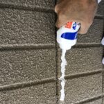 外壁のひび割れの補修をします。壁面の汚れを落とした後、シーリングを打ちます。ひび割れは塗装前にしっかりと補修をしていきます。