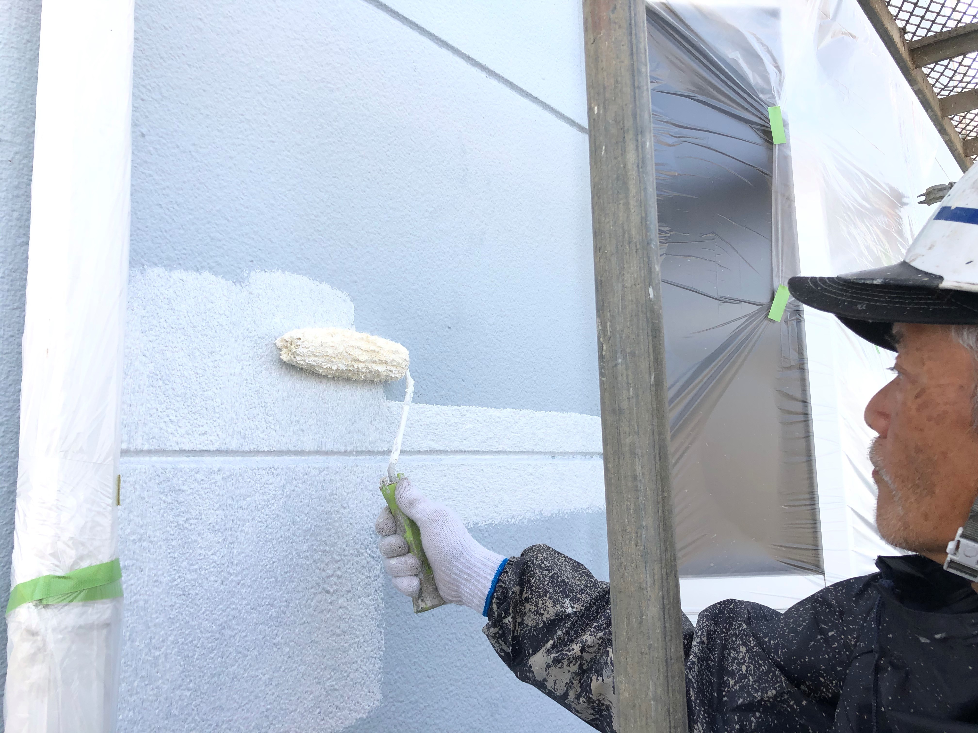 チョーキング現象は、外壁の劣化現象の1つで手に白い粉が付く現象のことをいいます。チョーキング現象が出ている場合は、下地処理がとても大事になってきます。高圧洗浄で粉を洗い落とし表面の汚れを綺麗にしてからしっかり乾燥、そのあとで下塗り、中塗り上塗り塗装を行います。